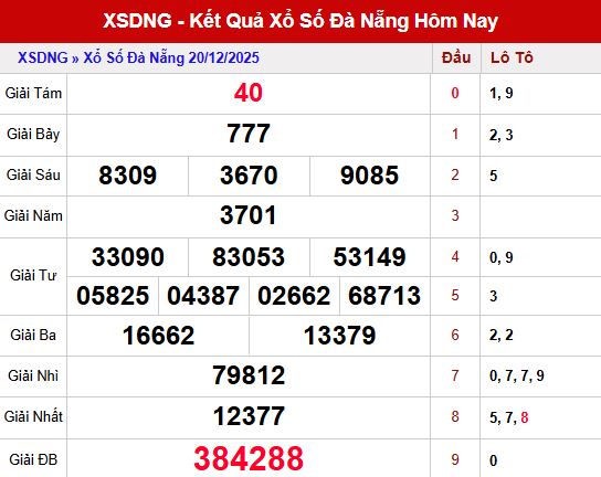 Qua phân tích dự đoán xsdng 24/12 với dữ liệu cụ thể, có thể thấy xổ số Đà Nẵng ngày 24/12/2025 đang hội tụ nhiều tín hiệu đáng chú ý ở nhóm loto kép, loto đảo và số tần suất cao. Các cặp 79 – 84 – 48 – 19 được đánh giá sáng cửa nhất trong kỳ này.